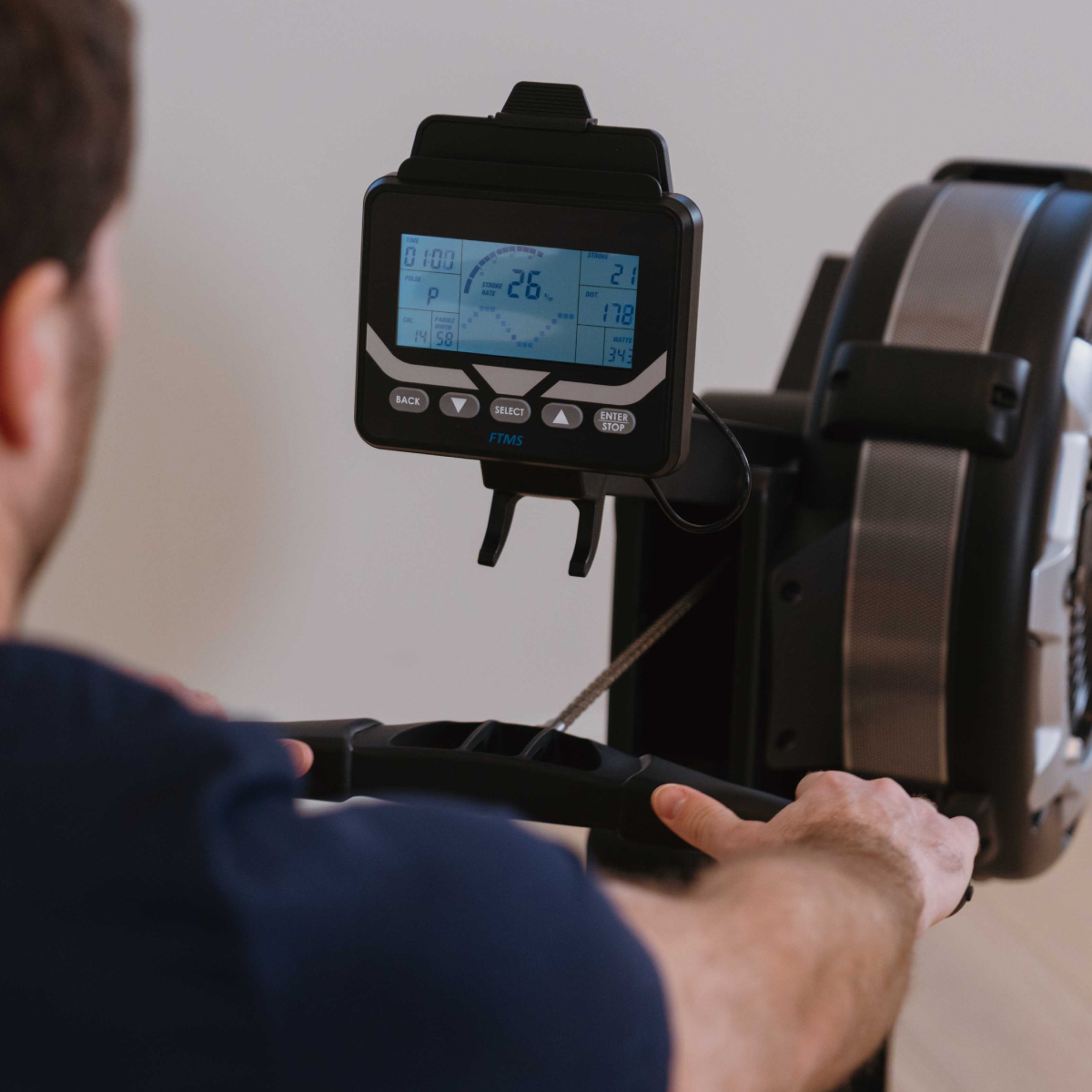 - Alsidig træning: Understøtter manuel roning, intervaller, nedtælling og pulsstyret træning