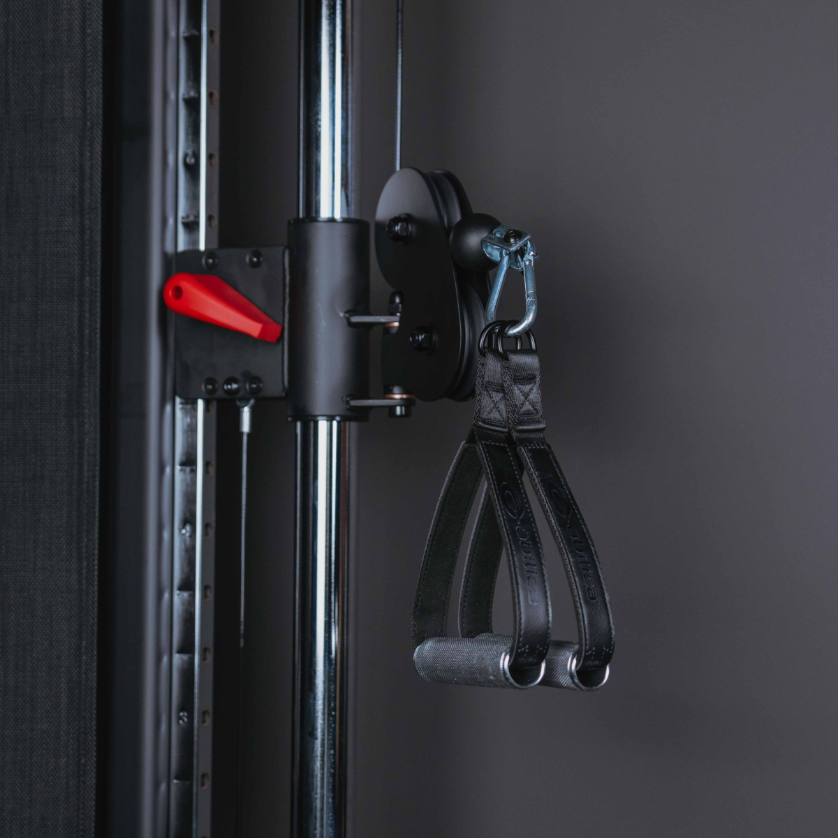Med det gode greb og den slidstærke strop i nylon og PU er håndtaget designet til både hjemmetræning og brug i virksomheder. Med den unikke overflade, du får fra et aluminiumshåndtag, får du et meget godt greb, som samtidig ikke er for groft for hænderne. Håndtaget har en grebsdiameter på 32 mm og en grebslængde på 13,5 cm. Håndtaget er velegnet til øvelser som enarms roning, enarms nedtræk, eller – ved at bruge begge håndtag – til brystpres, reverse flyes og ro-bevægelser. Håndtagene fylder meget lidt og er nemme at opbevare, når de ikke er i brug. Karabinhage er ikke inkluderet.