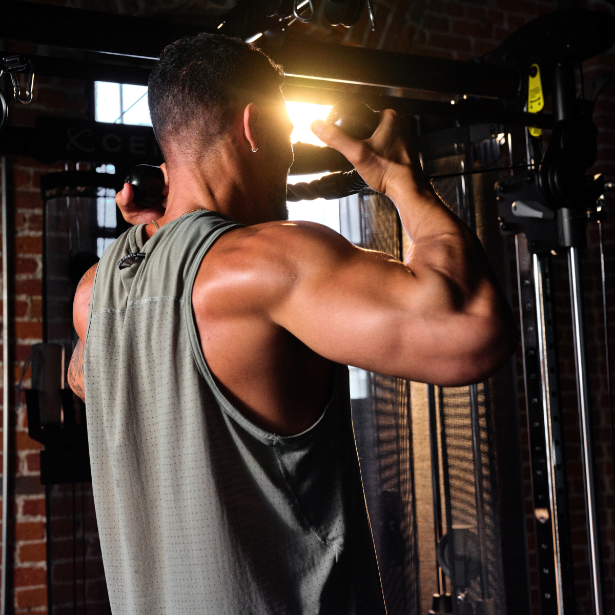 - Lat pulldown med begge vægtmagasiner via aluminium latstang