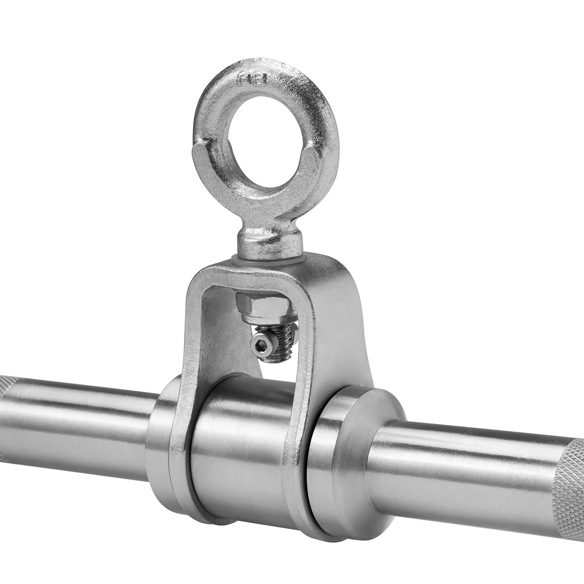 Den er lavet af robust stål og udstyret med en højkvalitets swivel, som giver to-leds rotation, så du kan holde et optimalt greb gennem hele øvelsen. Hardkrom-belægningen giver stangen et flot, mat udseende, som både er korrosionsbestandigt og meget slidstærkt. Den tynde belægning forbedrer strukturen i serrateringen (riflerne) på håndtaget, og den matte finish modvirker glathed – perfekt til dig med svedige hænder, som ønsker et sikkert greb.