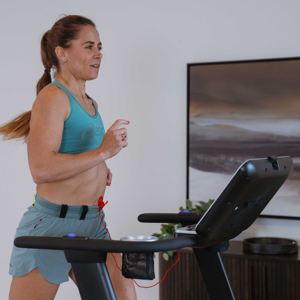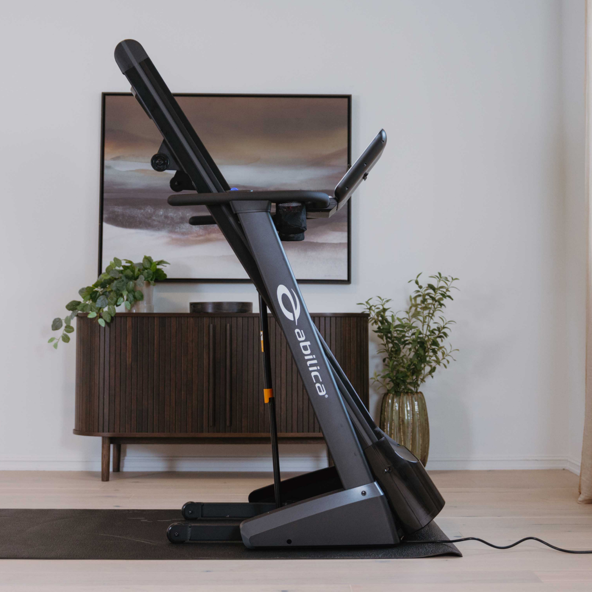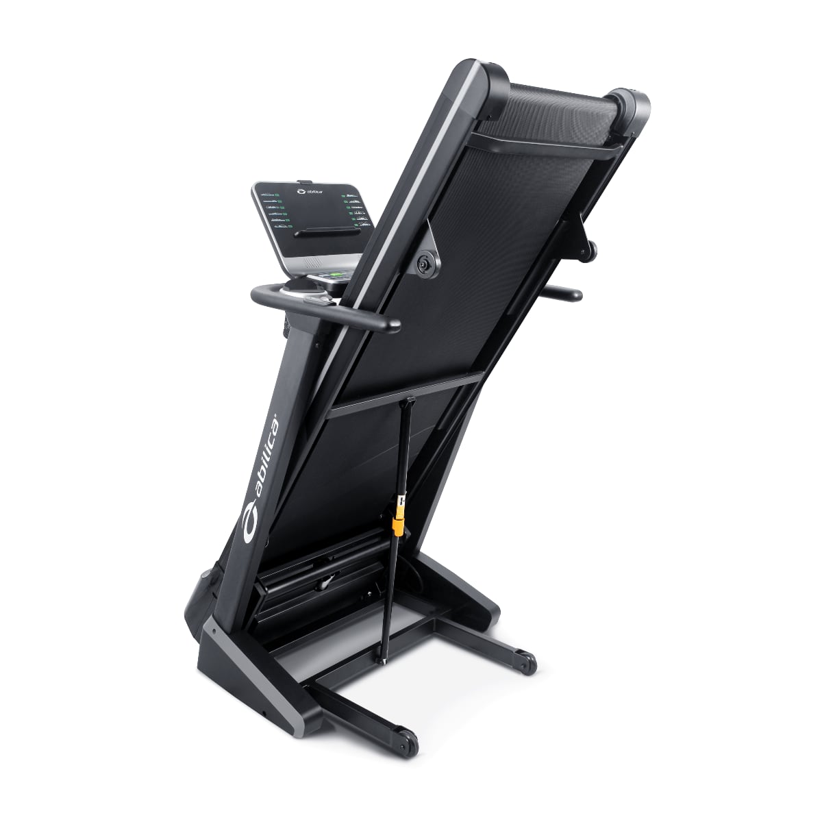 Løbebåndet er sammenklappeligt og har hjul for nem flytning.