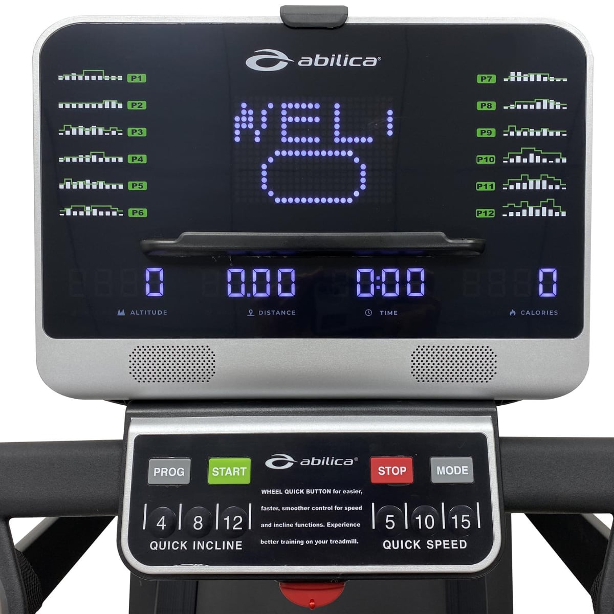 Den har praktiske hjul til justering af hastighed og hældning. Med dette hjul kan du vælge, om du vil justere hastigheden med 0,1 eller 1,0 km pr. justering. Dette er perfekt, når du ønsker hurtig stigning i hastighed under intervaller, eller når du vil presse dig selv lidt ekstra på langture. Der er også hurtigvalg for hastighed og hældning. Abilica Mill 30 har højttalere og tilslutningsmuligheder til at afspille musik.
