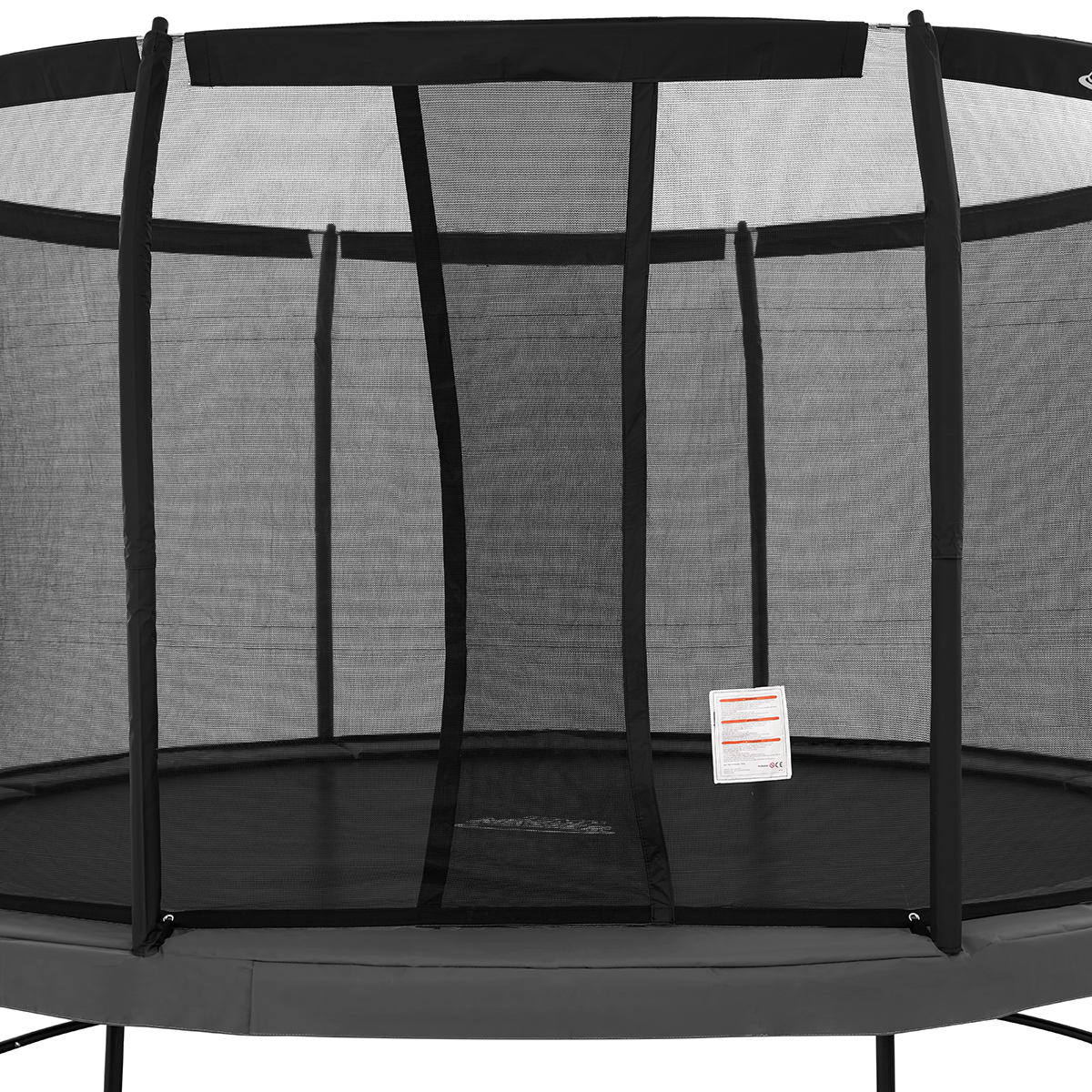 Trampolinen leveres med Pro sikkerhedsnet, udviklet til maksimal tryghed og lang levetid. Nettet er UV- og rivebestandigt, finmasket og konstrueret til at reducere risikoen for, at fingre eller tæer sætter sig fast.