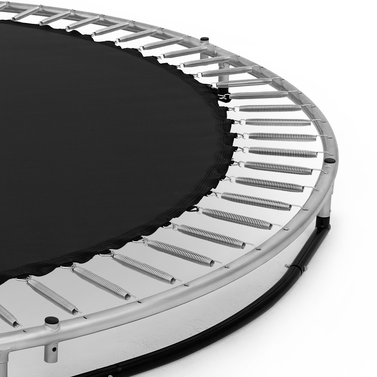 Rammen er produceret i galvaniseret stål for effektiv rustbeskyttelse og lang levetid i nordisk klima. Kantpolstringen er 30 mm tyk og 36 cm bred og giver en bred sikkerhedszone rundt om hele hoppefladen.