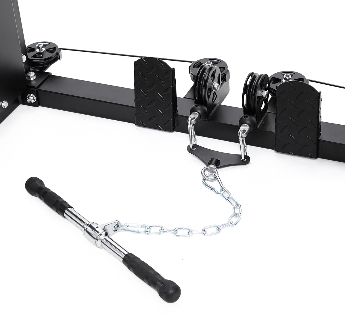 En pulley-ratio på 1:2 giver silkeblød bevægelse og jævn modstand, hvilket sikrer bedre kraftoverførsel. Med den medfølgende 2:1-adapterkrog kan du nemt koble begge vægtmagasiner sammen og opnå et 1:1-forhold – ideelt, når du vil øge belastningen og udfordre dig selv.