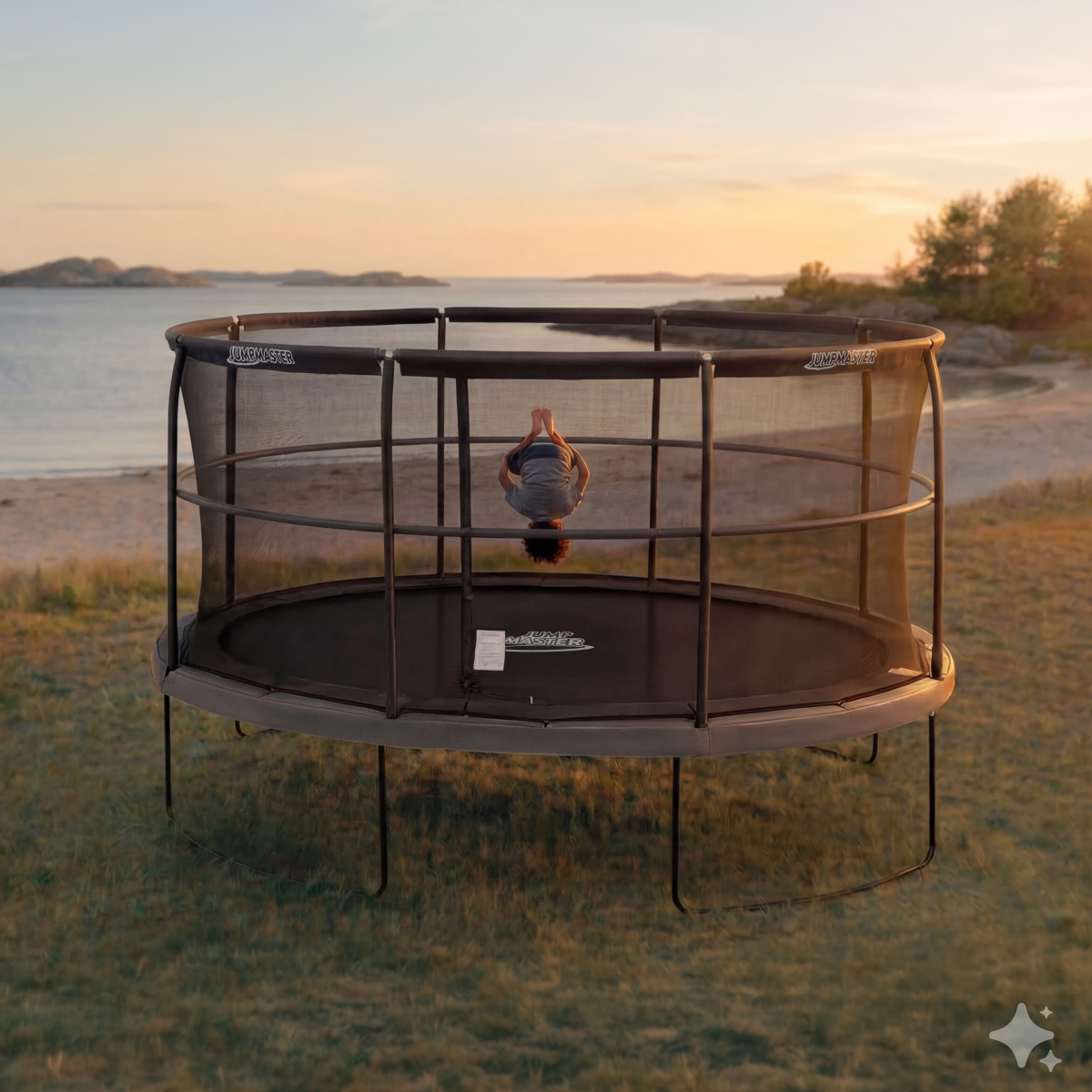 Jumpmaster Premium Oval Trampolin er et gennemtænkt valg til familier, der ønsker en stor trampolin med balanceret affjedring, høj sikkerhed og solid konstruktion. En model, der kombinerer ydeevne, komfort og holdbarhed - tilpasset aktiv brug år efter år.