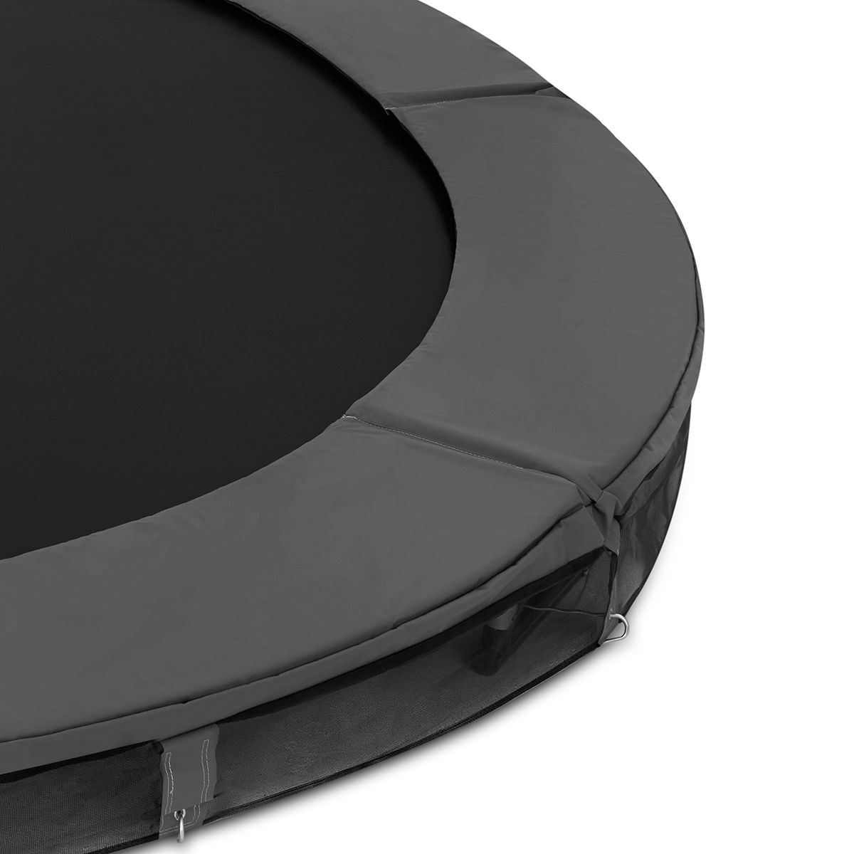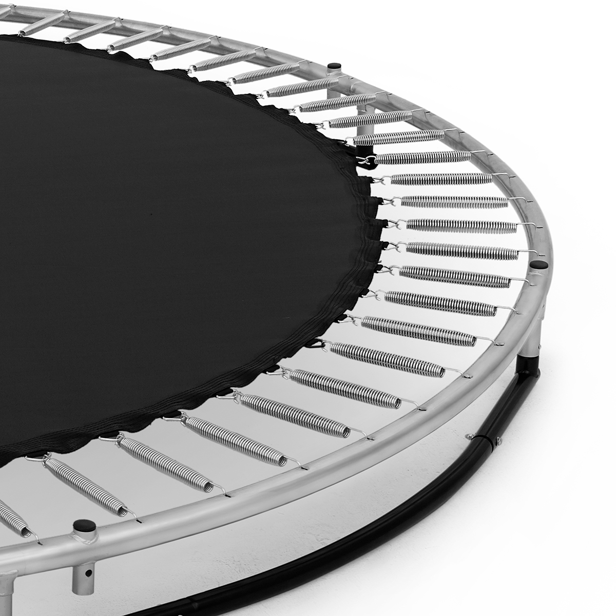 Rammen er produceret i galvaniseret stål for effektiv rustbeskyttelse og lang levetid i nordisk klima. Kantpolstringen er 30 mm tyk og 36 cm bred og giver en bred sikkerhedszone rundt om hele hoppefladen.