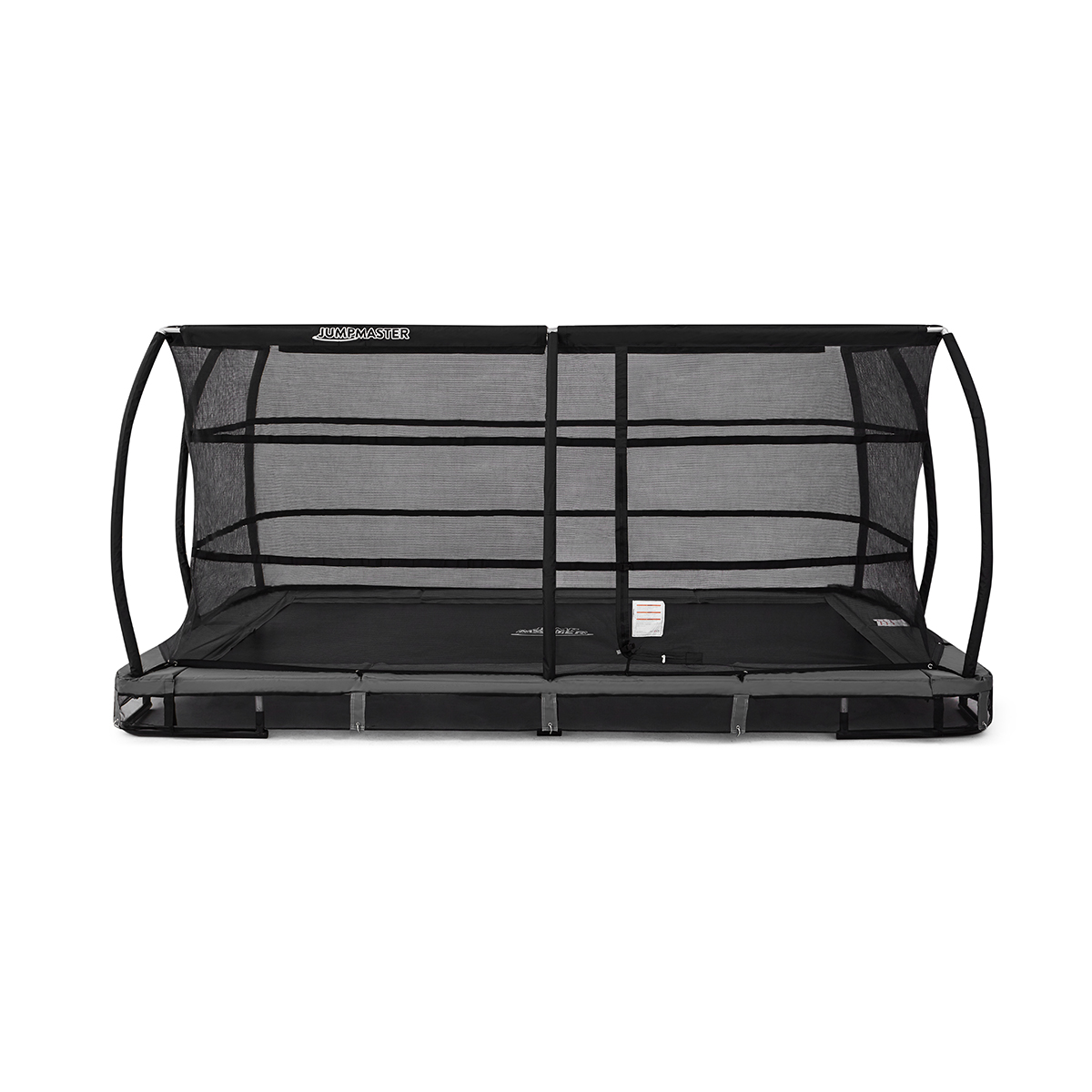 Jumpmaster Premium Rektangulær Inground leveres med Pro sikkerhedsnet, udviklet til maksimal tryghed og lang levetid. Nettet er UV- og rivebestandigt, finmasket og konstrueret til at reducere risikoen for, at fingre eller tæer sætter sig fast.