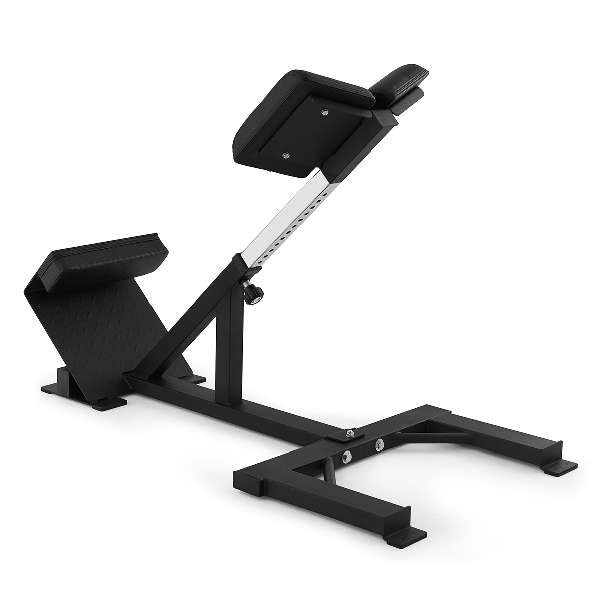Slidstærke og godt polstrede puder sikrer høj komfort, og den kraftige stålramme giver fremragende stabilitet under træning. Bænken er konstrueret til effektiv aktivering af lænden, ballemuskulaturen og kernemusklerne og er derfor et nyttigt redskab til både styrkeopbygning og skadeforebyggelse.