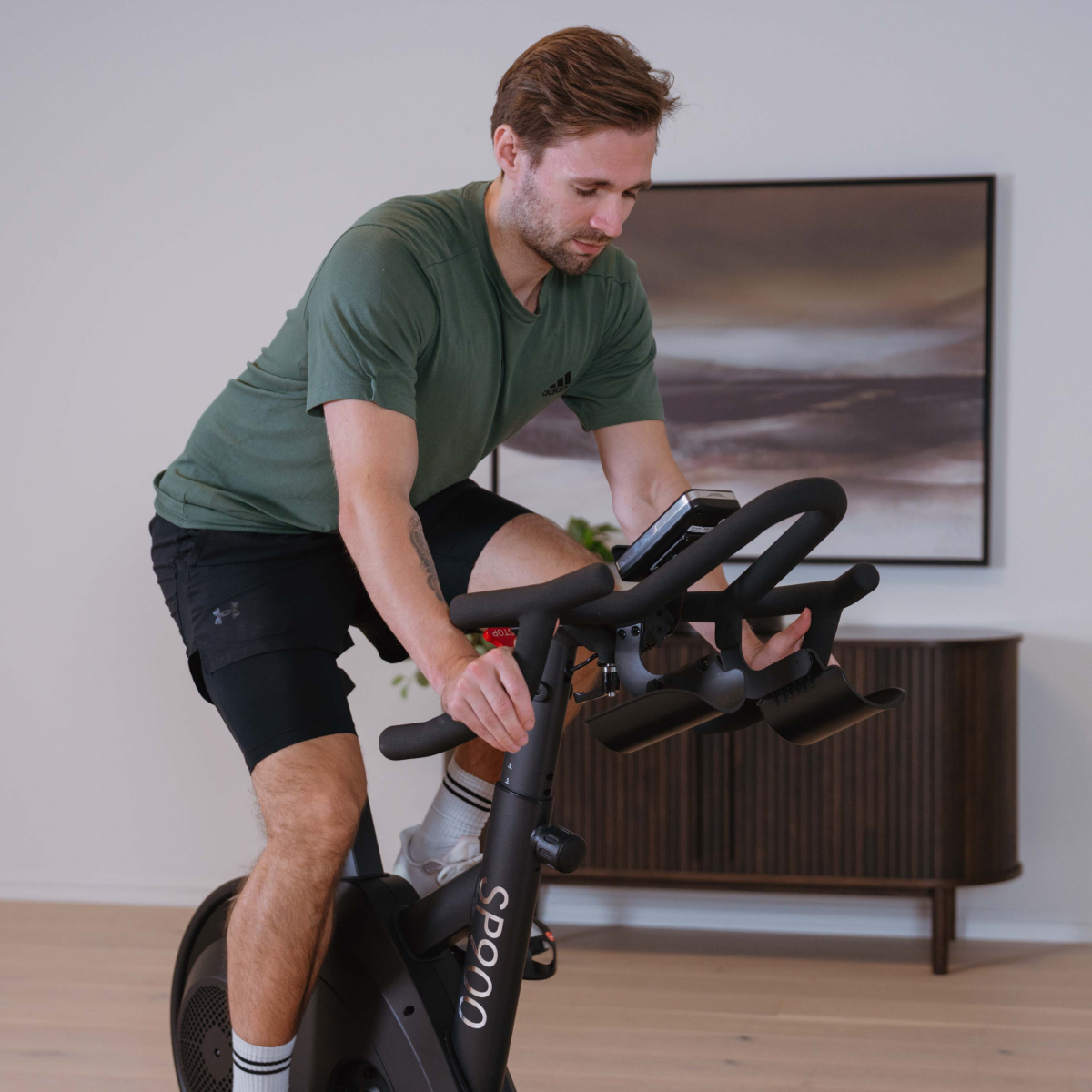 Spinningcyklen understøtter automatisk modstandsjustering baseret på tredjepartsapps som Zwift, Rouvy, Wahoo m.fl., hvilket giver en meget realistisk og interaktiv træningsoplevelse.