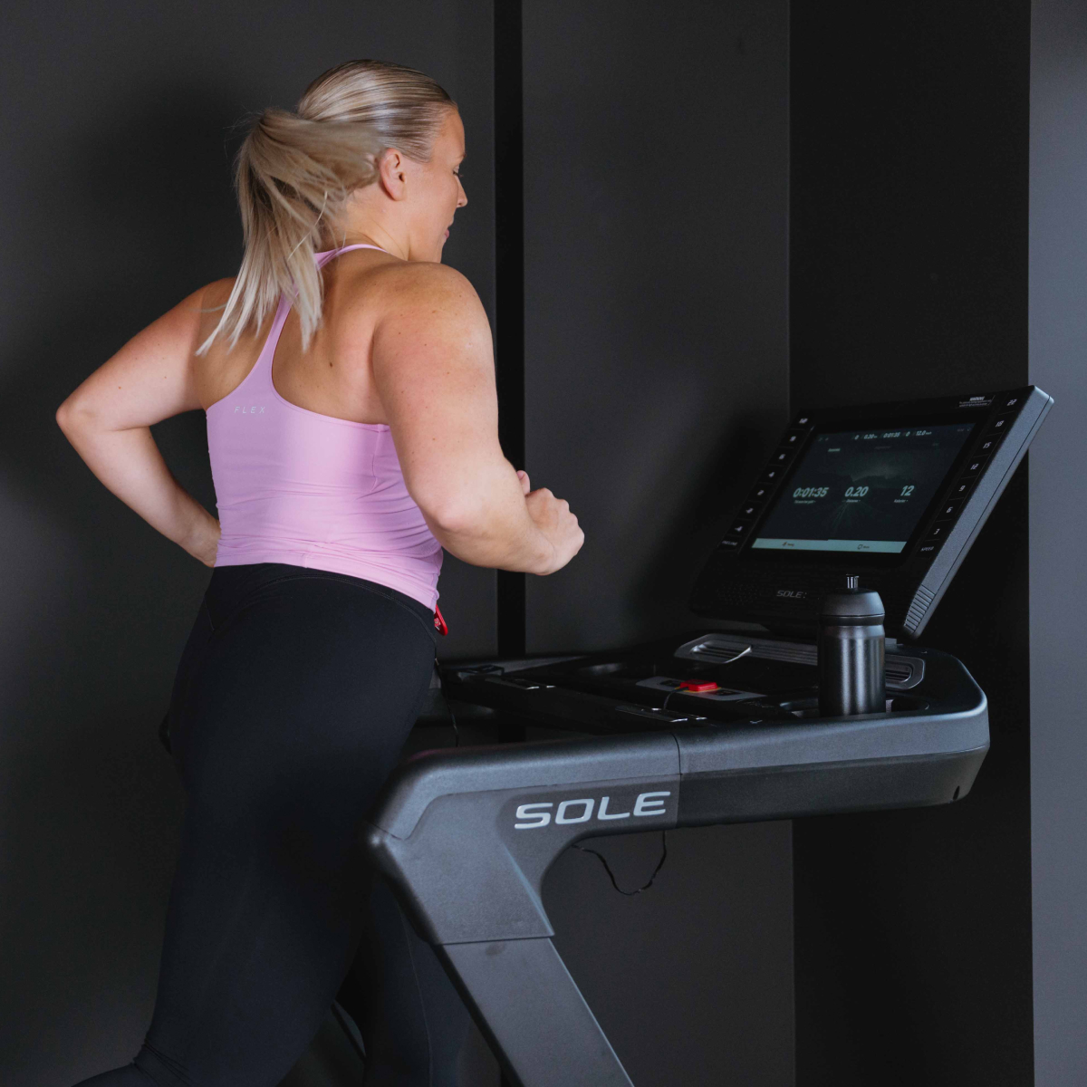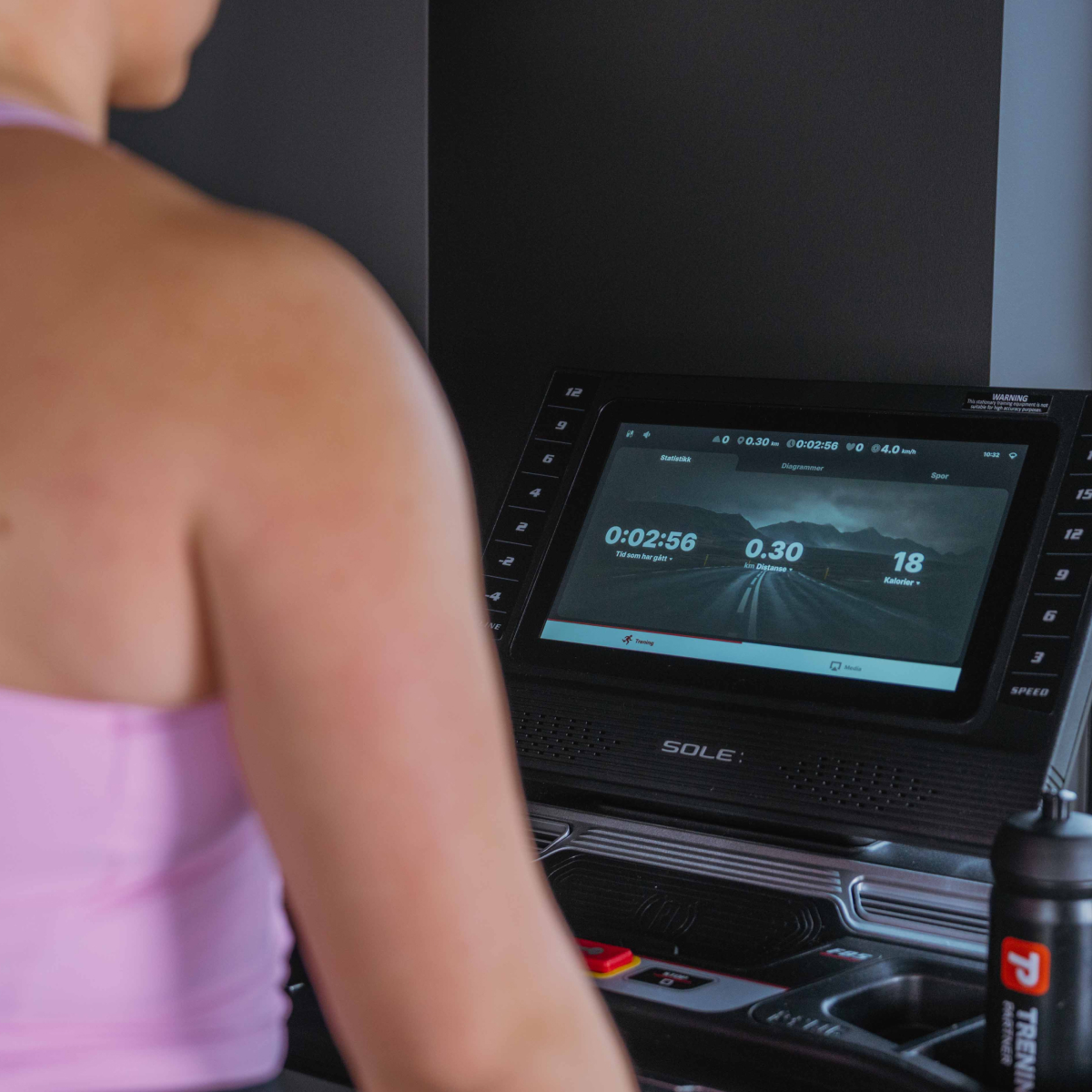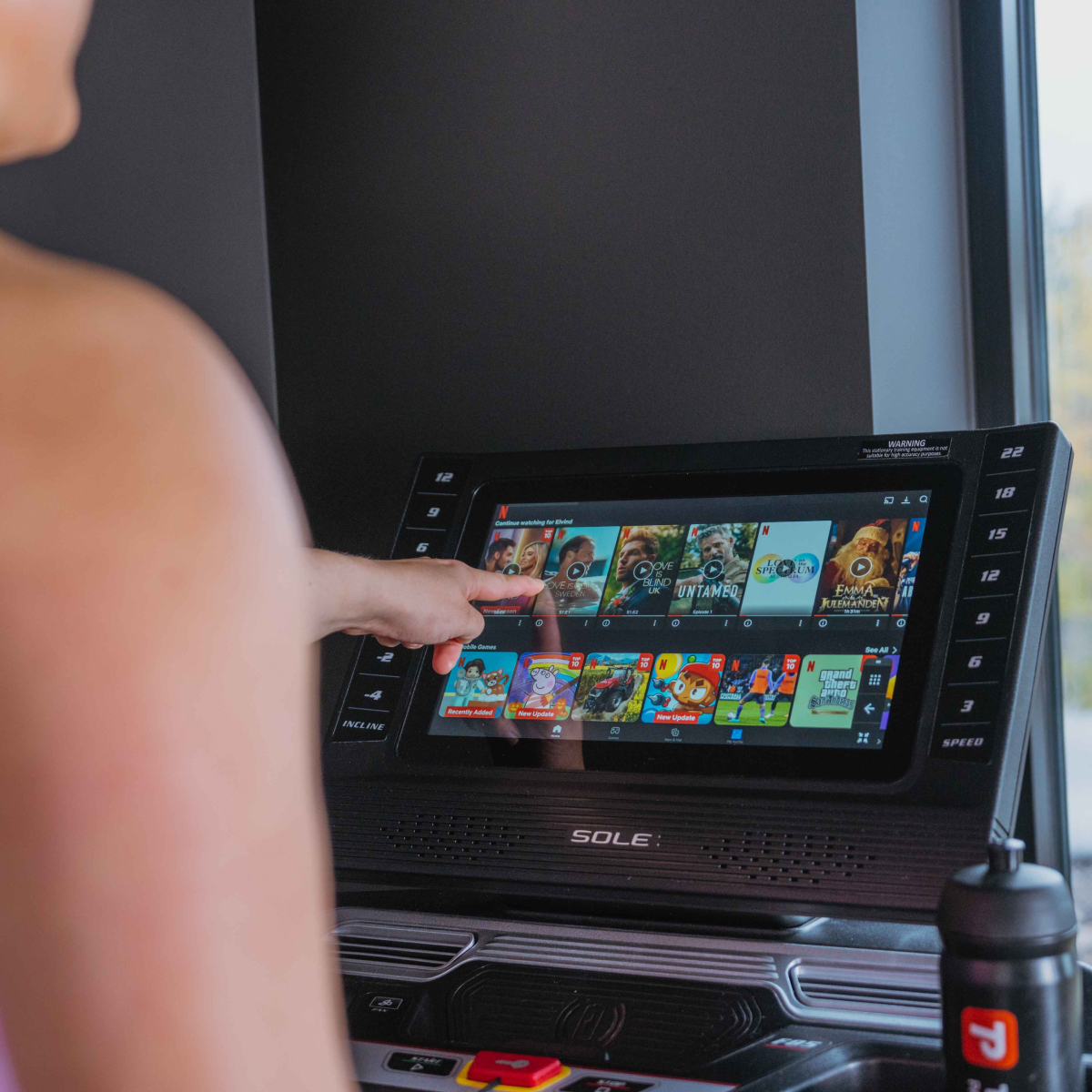 Sole F85 ENT er et løbebånd med en stor 15,6" touchskærm og underholdningsfunktion.