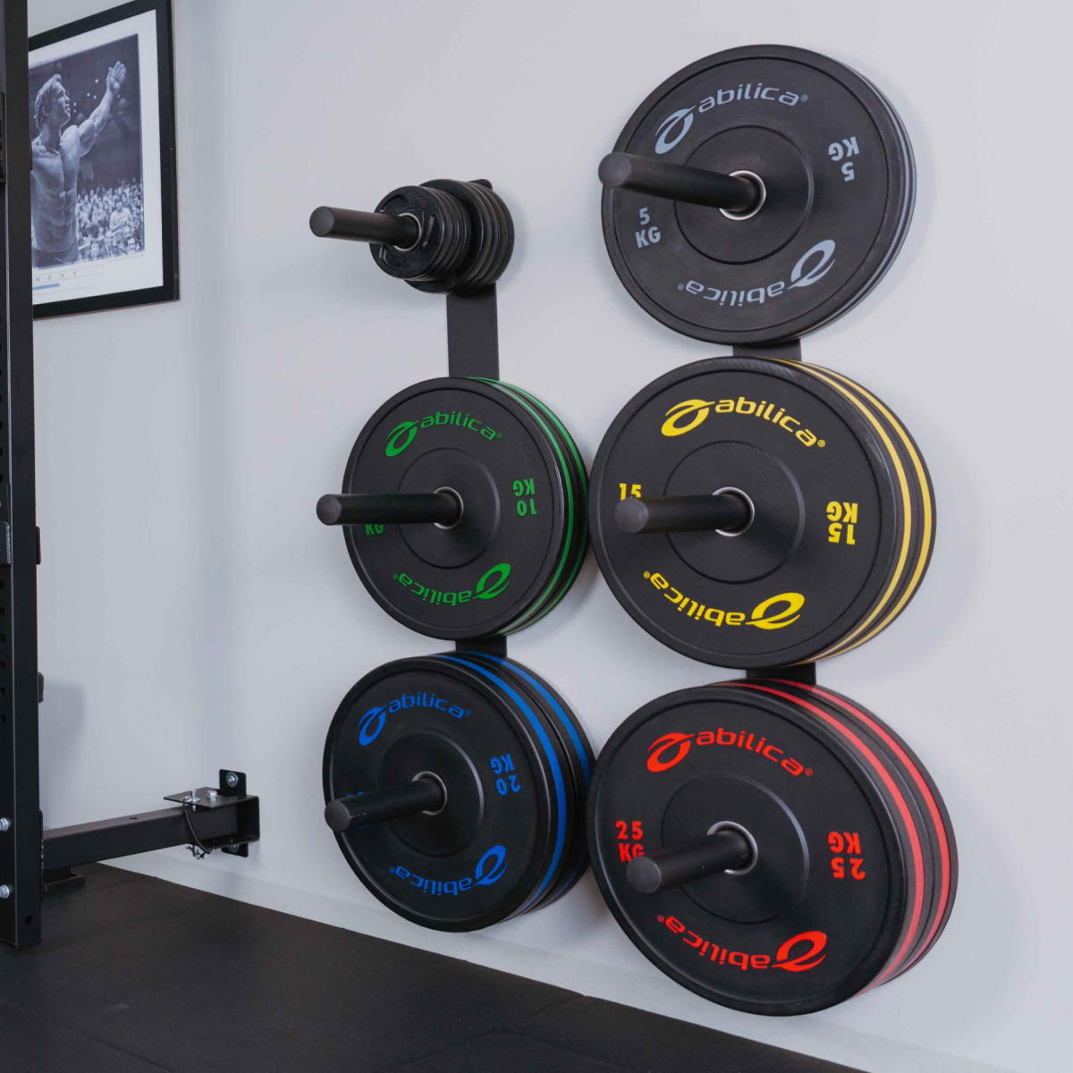 Abilica vægopbevaringsløsning for vægtskiver er et opbevaringssystem til væg, som kan monteres både lodret og vandret alt efter, hvordan du ønsker at designe dit træningsrum. Stativet passer lige godt i et træningsrum derhjemme som hos en virksomhed.