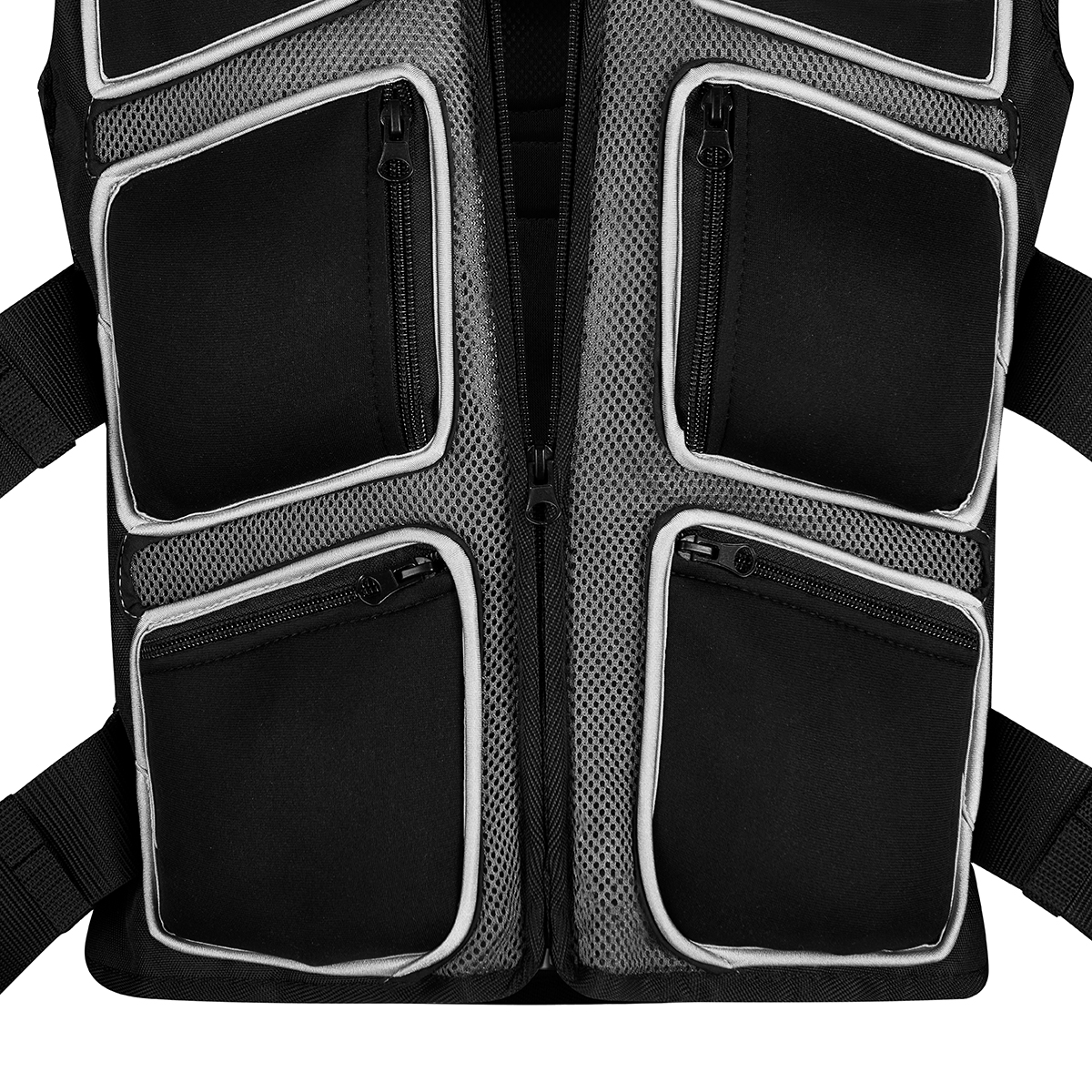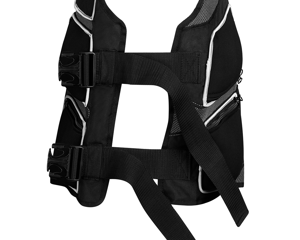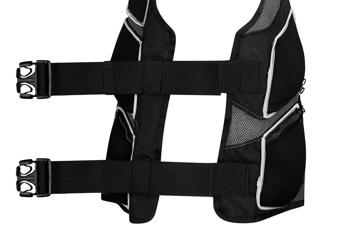 Vesten er udstyret med 2 kraftige spænder på 5 cm bredde, som giver meget gode justeringsmuligheder og sørger for, at vesten sidder tæt og stabilt ind mod kroppen. Materialerne er slidstærke, men samtidig bløde og komfortable, bl.a. med luftigt netstof, som giver god ventilation gennem hele træningsøkten. Ekstra polstring på skuldrene giver øget komfort, selv under større bevægelser eller længere økter. Vesten er designet med gennemtænkte detaljer og refleks i både frontlogoet samt refleksbånd foran og bagpå, hvilket gør den tryg at bruge udendørs – også i mørke.
