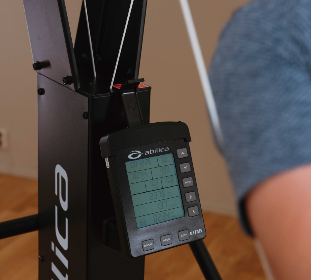 På ski ønsker man en let fremadlænet position og en høj hofte. Stå derfor tættere på Skierg og læn dig en smule frem. Hvis du står med ret ryg og strakte arme, vil du ofte komme til at sende bagdelen bagud i hvert træk. Det vil du undgå, når du træner langrend.