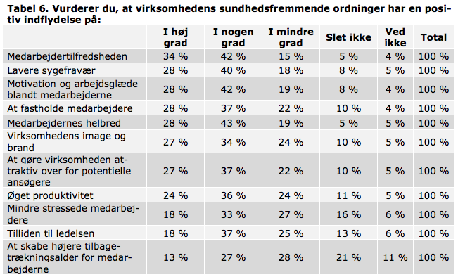 En undersøgelse fra Ledernes Hovedorganisation viser at lederne vurderer at sundhedsfremmende initiativer har flere positive gevinster (1*).