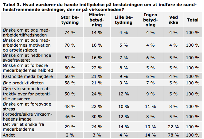 Ledernes Hovedorganisation har lavet en undersøgelse, hvor de spørger til bevæggrundene for at indføre de sundhedsfremmende ordninger. Her er hvorfor andre danske virksomheder har indført sundhedsordninger (1*).